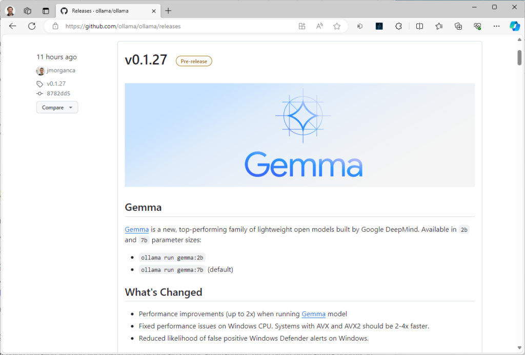 De installatie van Ollama is eenvoudig. Onder Windows kun je een standaard installatieprogramma gebruiken. We raden aan om deze op te halen via de pagina met releases op GitHub (https://github.com/ollama/ollama/releases). Daar kun je de laatste versie downloaden en lees je over de recente veranderingen.