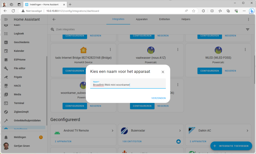 De hub is automatisch ontdekt binnen Home Assistant en hoef je bij het toevoegen alleen een naam te geven.